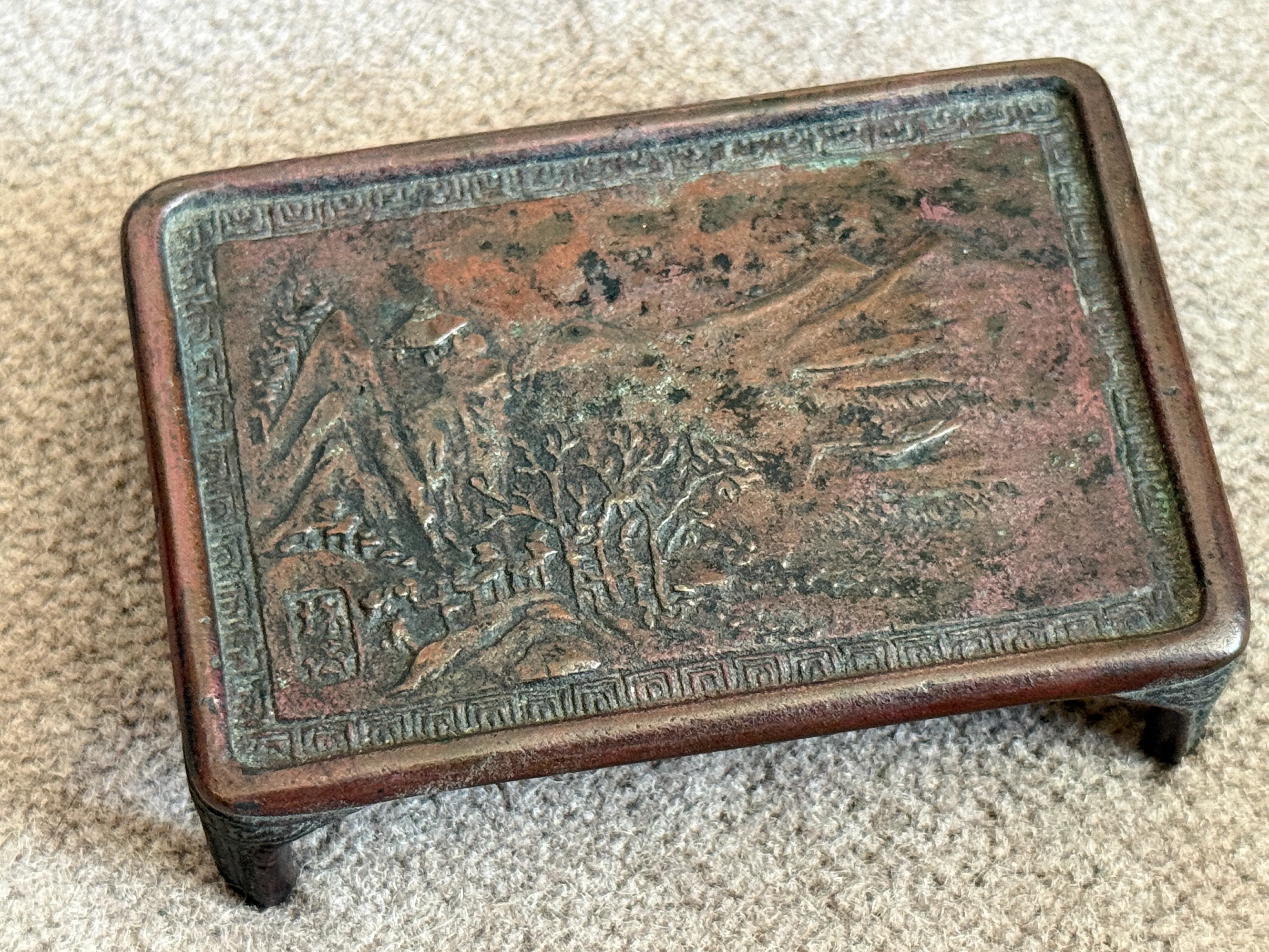 ではなぜ、この小さな墨床に4万円の価値が見出されたのか。一般的な骨董店であれば「小ぶりな銅製品」として数千円程度、場合によっては重量のみで評価される可能性も否定できません。しかし私が注目したのは、底面の「琢斎」という銘だけではなく、「煮色(にいろ)」と呼ばれる独特の発色が生み出す、深く落ち着いた栗色の美しさでした。